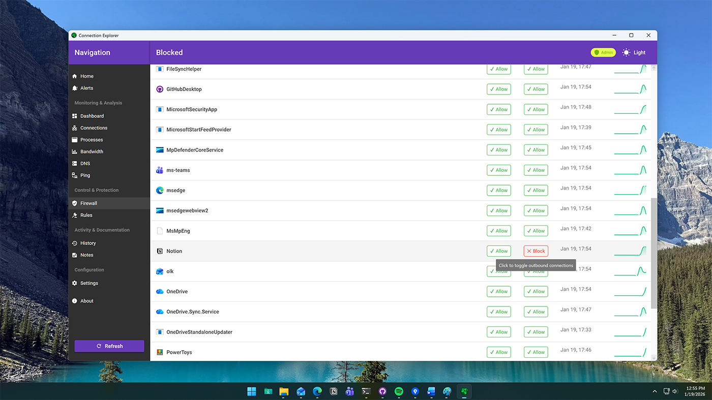 Connection Explorer shows where your PC is sending data in real time