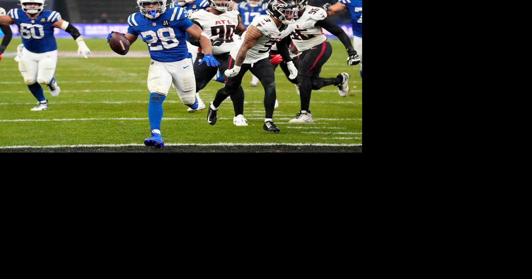 Taylor runs for 244 yards and 3 TDs for Colts in 31-25 OT win over Falcons in Berlin