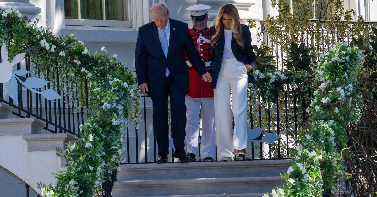 Unsteady Donald Trump Grips Melania's Hand as He Cautiously Walks Down White House Steps Amid Health Concerns: Photos