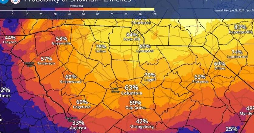 Pee Dee could see at least two inches of snow this weekend