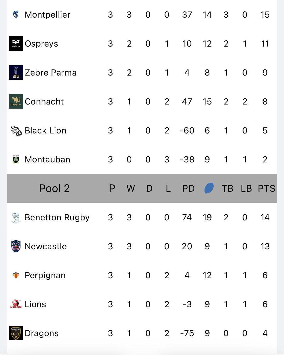 European Rugby – Monday Handicap Moves