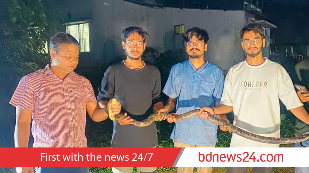 Eight-foot king cobra rescued from Chittagong University streamside